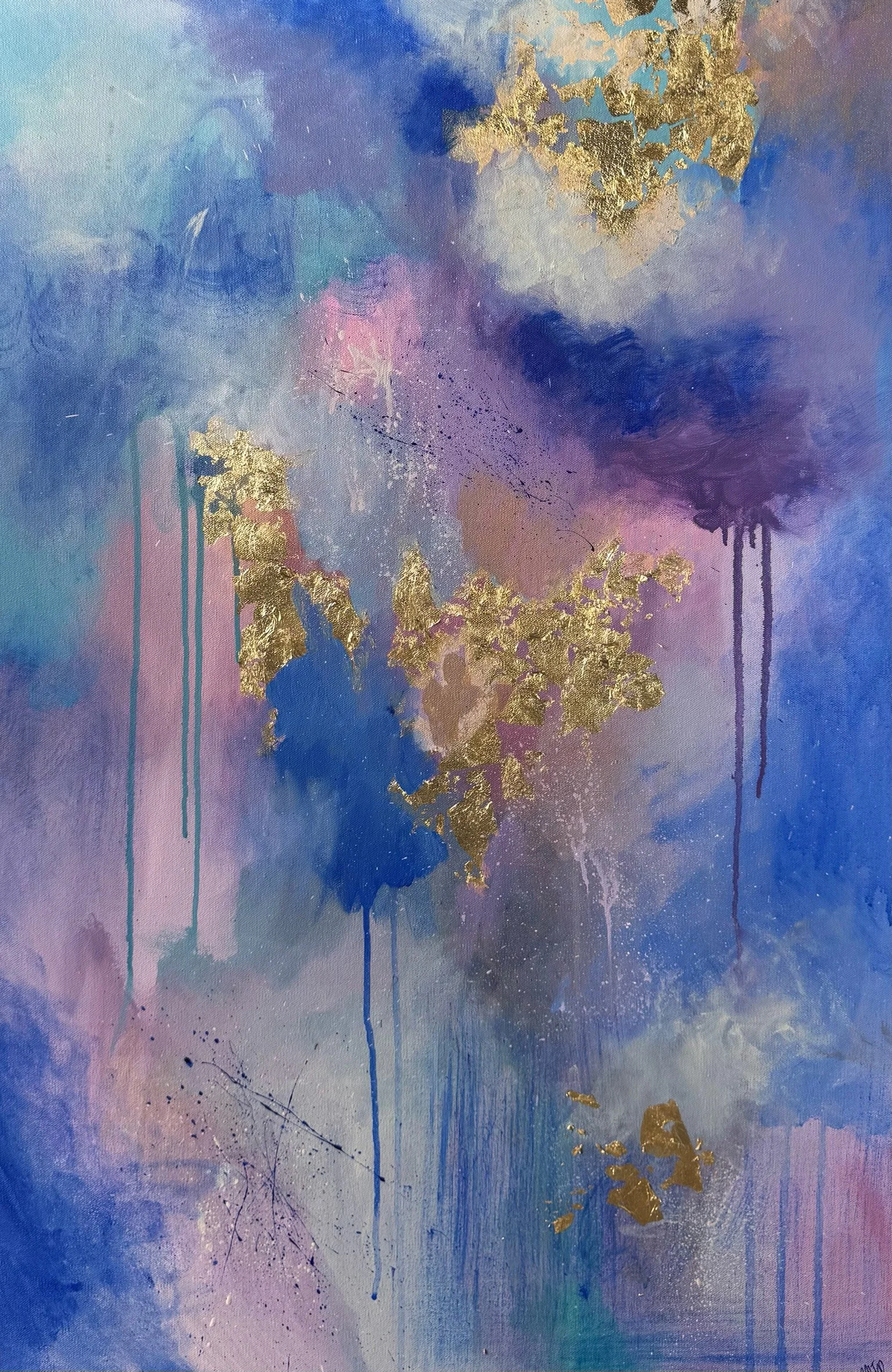 slice of heaven. acrylic and golf leaf on canvas, 24x36, 2024